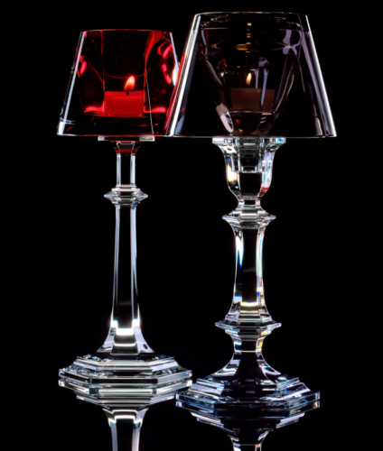 Créé par Philippe Starck, le bougeoir Our Fire tout en cristal inspiré du célèbre service Harcourt fait désormais partie des créations iconiques de Baccarat. Le candélabre est composé de trois parties : un bougeoir Harcourt pour base, une paraison inspirée de celle du verre Harcourt servant de réceptacle à la bougie et un abat-jour en cristal métallisé, rouge ou doré. Filtrée par la magie du cristal, la lumière vacillante de la flamme d’une bougie devient resplendissante. Également décliné en noir ou blanc, chaque bougeoir comporte la signature "Baccarat by Starck".