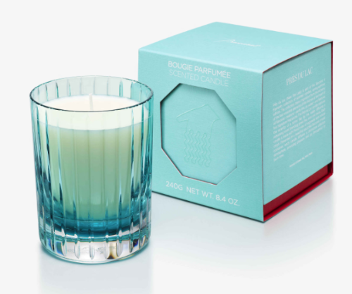 Près du Lac appartient à la collection de bougies parfumées Baccarat 4 Éléments, édition printemps-été. La collection s’inspire de l’alchimie des quatre éléments essentiels à la vie qui sont au cœur de toutes les créations Baccarat - terre, feu, air, eau - et se décline en quatre parfums signature. La bougie Près du Lac capture la sérénité d’une journée ensoleillée au bord de l’eau, diffusant un parfum rafraîchissant mêlant thé vert, menthe et musc. Chaque bougie est confectionnée avec une cire française d'origine végétale et minérale. Présentée dans un élégant contenant en cristal Baccarat upcyclé, chaque bougie diffuse une ambiance olfactive singulière, procurant du plaisir et de la joie tout au long de son brûlage.