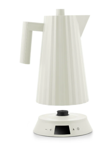 La bouilloire Plissé allie le côté fonctionnel à un design plastique fascinant : comme un tissu qu’un pliage serré transforme en un objet tridimensionnel, cette bouilloire évoque une robe de haute couture. La nouvelle version présente une possibilité de régulation de la température, ce qui élargit les possibilités d’utilisation et offre la solution idéale pour tous les cas où l’eau ne doit pas être bouillante.