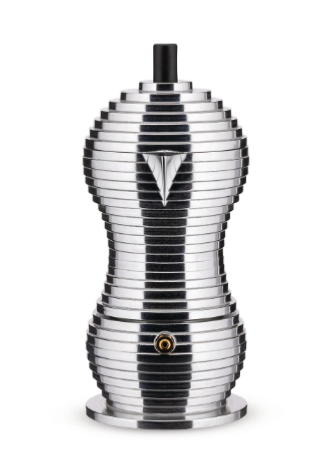 Une moka révolutionnaire qui allie l'expérience d'Alessi dans le domaine de la conception à la technologie développée par illycaffè. Dessinée par Michele de Lucchi, Pulcina présente une petite innovation conceptuelle, fondamentale pourtant qui interrompt le flux au bon moment pour que le café n'ait pas un arrière-goût amer. Cela permet de mettre en valeur l'arôme rond et corsé de cette boisson. Le bec, qui rappelle le bec d'un poussin (d'où le nom de la cafetière), permet de retenir parfaitement la goutte.