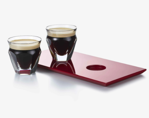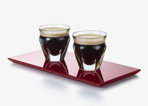 Pour sublimer l'art unique de la dégustation d'un expresso, Baccarat propose le raffinement d'une tasse en cristal. Un cadeau à offrir absolument à ses amis épicuriens. Déclinée de l'historique silhouette du "roi" des verres, Harcourt, cette tasse est une invitation à la plus élégante des pauses-café. L'audacieux "mix and match" du plateau rouge fluo en altuglas, réalisé à la main et sur mesure pour nos tasses à expresso Harcourt, du cristal clair et du noir crémeux d'un café, révèle l'expérience voluptueuse de Café Baccarat.