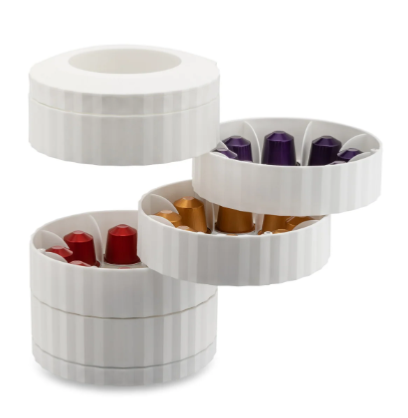 Porte-capsules pour café expresso avec 5 étagères rotatives en résine thermoplastique, vert. Peut contenir jusqu'à 40 capsules compatibles avec les machines Nespresso®.