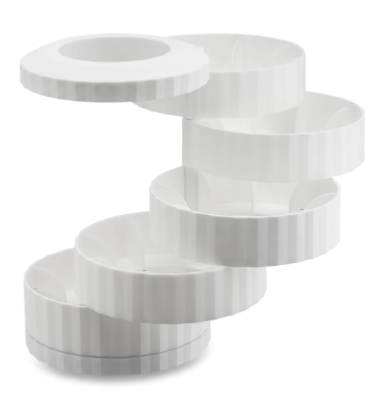 Un accessoire indispensable pour garder vos capsules de café préférées toujours à portée de main et bien rangées. Ce contenant pratique aux airs de maquette d’un bâtiment moderne ne laisse aucun doute sur son designer: Michele De Lucchi. Un objet pratique et fascinant: le mécanisme d’ouverture des cinq compartiments dans lesquels sont rangées les capsules offre, par le jeu des volumes dynamiques, une expérience d’utilisation agréable et, d’une certaine manière, surprenante.