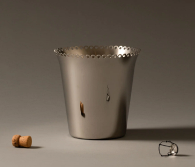 La série Edges se compose d’un panier, d’un présentoir à gâteau, d’un seau à glace et d’un plateau, avec pour trait commun le travail délicat des bords qui rappelle un galon de dentelle. Pour ce projet, Nika Zupanc a souhaité explorer le caractère iconique et immédiat de certains détails élémentaires, à l’image de ces petites perforations alignées sur le pourtour des pièces de cette mini-collection baptisée Edges. Pour la créatrice, il ne s’agissait pas tant de trouver une expression purement ornementale, mais plutôt de créer entre l’utilisateur et l’objet un lien profond : de ceux qui peuvent justement naître d’un élément simple, facilement compréhensible et capable de générer un impact émotionnel immédiat. Les pièces se déclinent en deux versions : acier inoxydable 18/10 ou acier inoxydable 18/10 avec placage PVD laiton.
