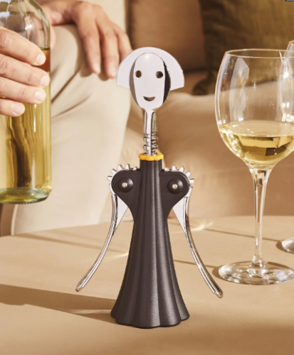 Tire-bouchon en résine thermoplastique, noir et zamac chromée.