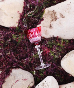 Le Roemer rouge fait partie d'un service de table en cristal de couleur. Celui-ci se compose également d'une flûte à champagne, une chope, un gobelet cylindrique petit, un verre à cocktail et un old fashion moyen n°3.