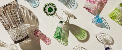Le Roemer bleu clair fait partie d'un service de table en cristal de couleur. Celui-ci se compose également d'une flûte à champagne, une chope, un gobelet cylindrique petit, un verre à cocktail et un old fashion moyen n°3.